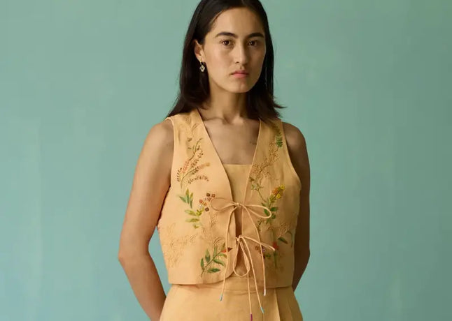Yes. Manan’s floral and hand-pleated linen dresses are meticulously handcrafted by skilled artisans. The delicate floral prints and pleats are designed to enhance each silhouette while maintaining the natural beauty and structure of the linen fabric.